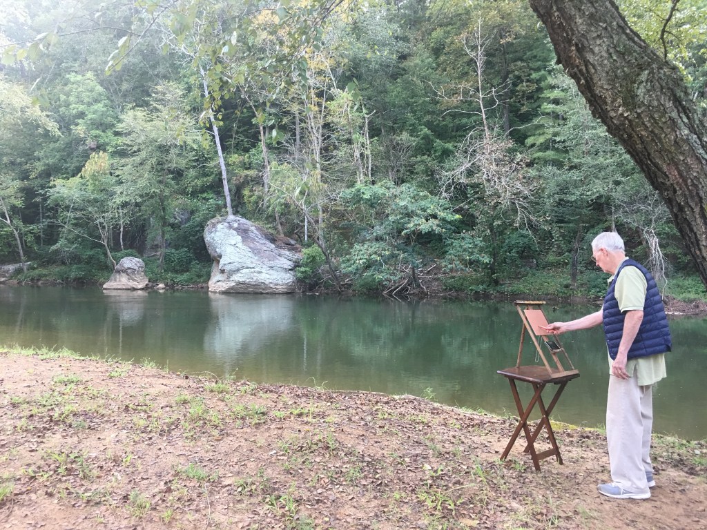 I’ve known Ron Hevey for over 20 years. He has been a great friend as we have travelled together on projects in Egypt and Guatemala. He served on the board of BuildaBridge several times as Chair. Once a month we met for a beer and burger at a local Mt. Airy pub, for lunch. We talked family, cars, finance and investments, life and travel. Last fall he visited the cabin and painted the cabin and the Broad river in Riverbend. Thanks Ron. The paintings are now a part of the cabin.